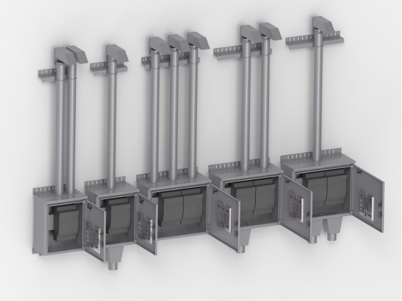 Az egy- Ă©s kĂ©t áramkörös kivitelű szekrĂ©nyek egyaránt alsĂł Ă©s felsĹ‘ betáplálási irányĂşak is lehetnek. A szekrĂ©nyek talajszintrĹ‘l kezelhetĹ‘ magasságban szerelhetĹ‘k a hálĂłzatok oszlopaira. IgĂ©ny szerint a szakaszbiztosĂtĂł szekrĂ©nyen belĂĽl is elhelyezĂĽnk illetve szekrĂ©nybĹ‘l is indĂtunk földkábeles leágazásokat.